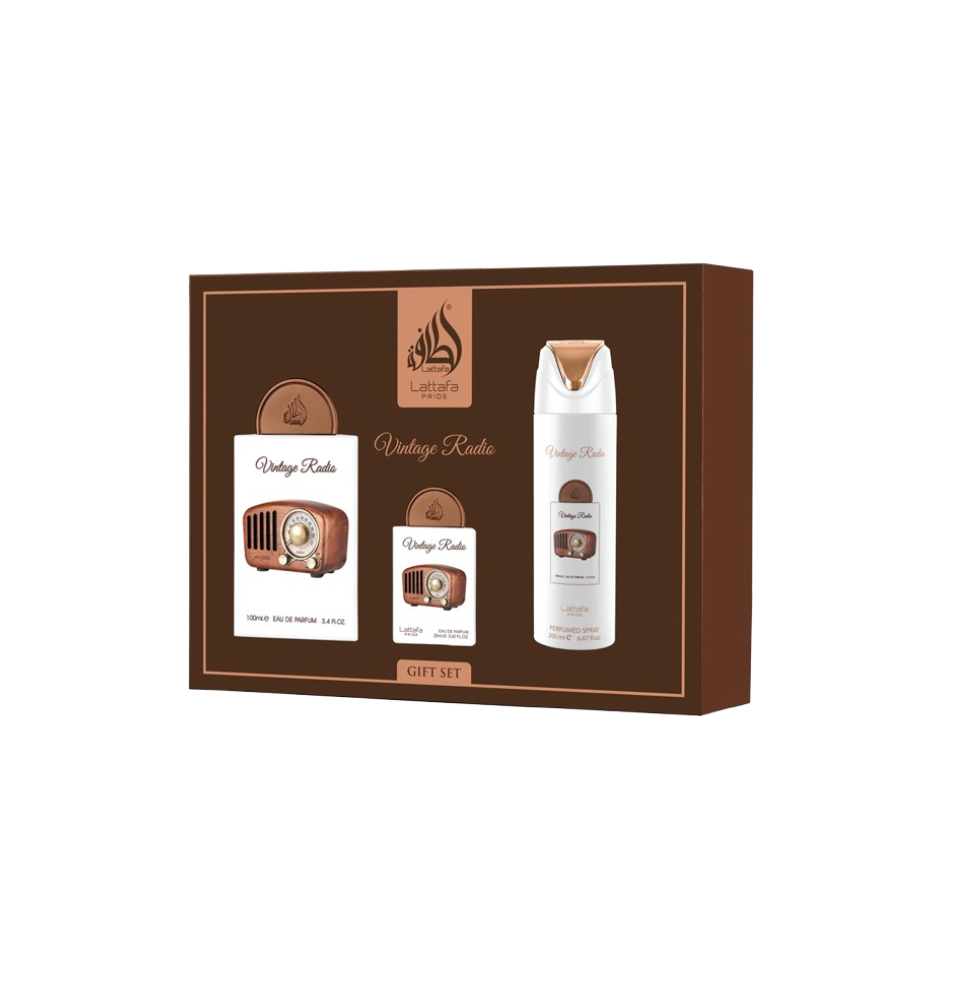Il regalo perfetto per chi ama i profumi. Il set Lattafa Pride Vintage Radio è pensato per chi desidera vivere la propria fragranza preferita in ogni momento della giornata, a casa e in viaggio.